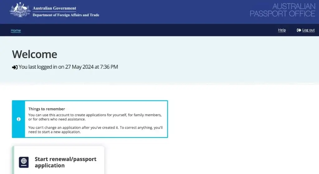 Select “Start renewal/ passport application” to get started.