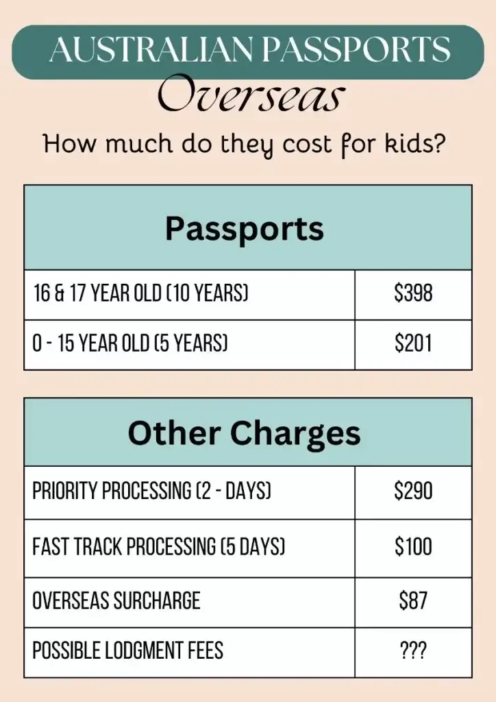 Consider if there’s value in obtaining an Australian Passport overseas for your child. It is an expensive process.